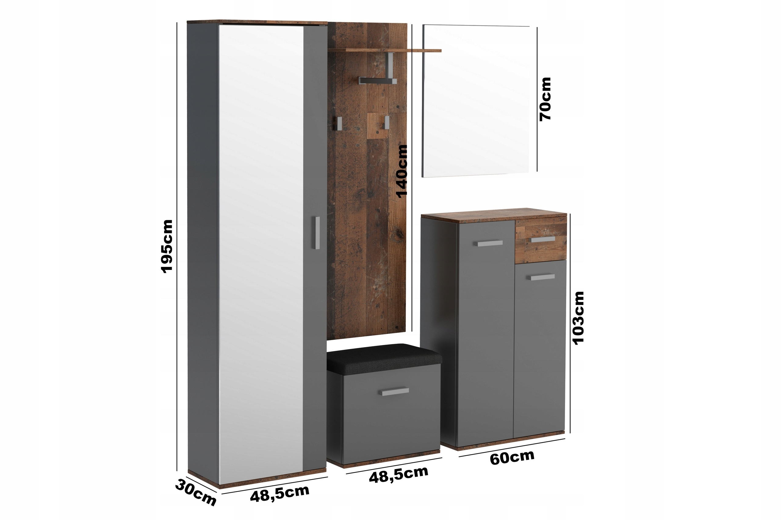 Garderoba JUSTUS 02-08 zestaw mebli do przedpokoju lustro pufa