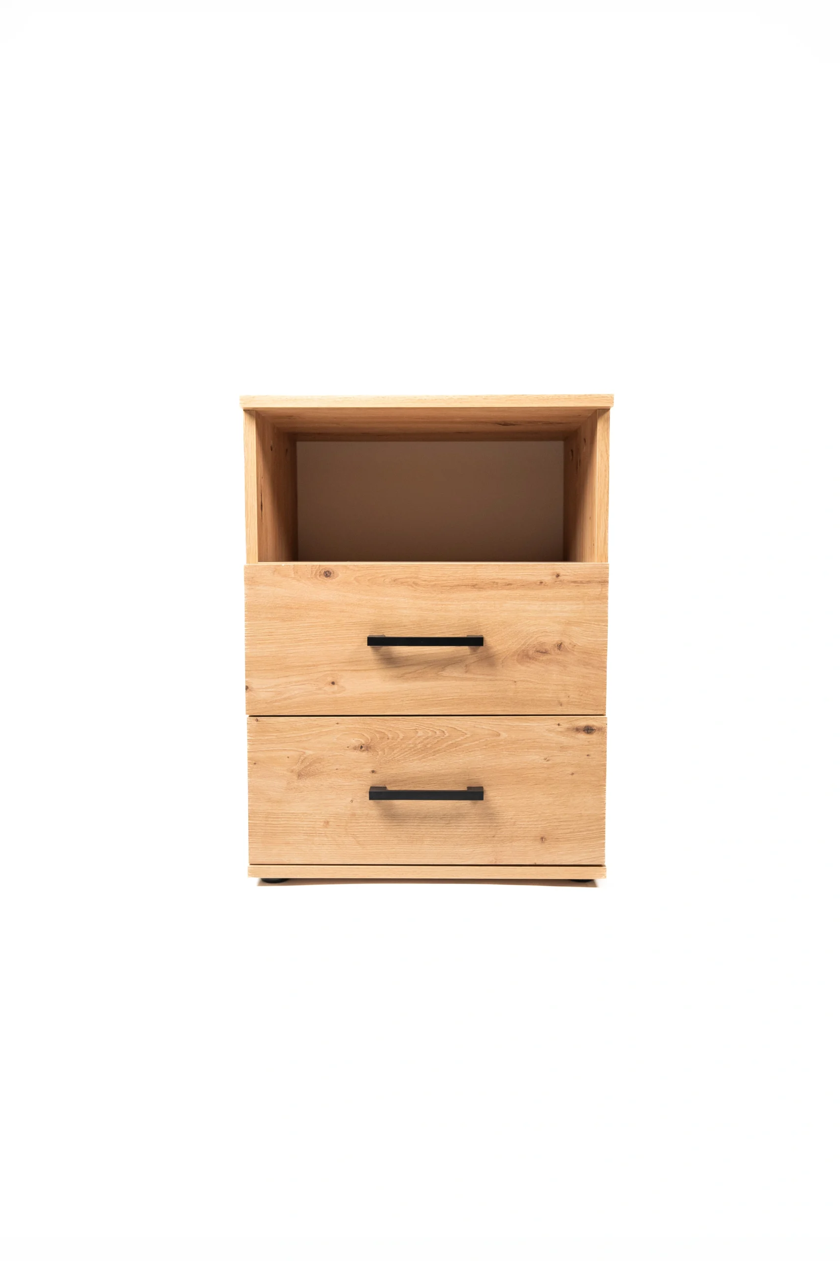 Stolik nocny GODA 3 2S to nowoczesny i funkcjonalny mebel, który doskonale sprawdzi się w każdej sypialni. Posiada dwie pojemne szuflady, które pomogą w organizacji niezbędnych przedmiotów, takich jak książki, okulary czy ładowarka.