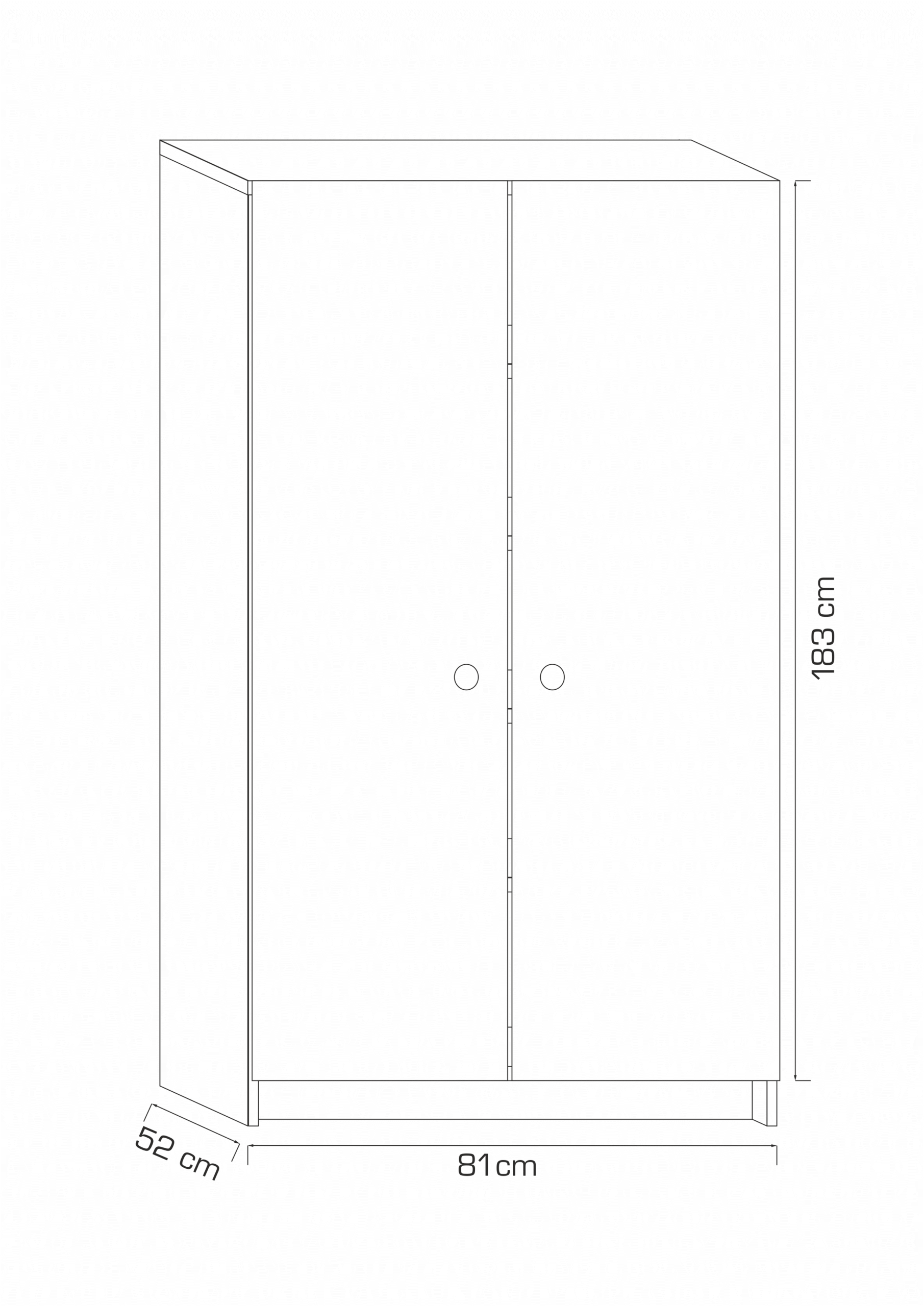Wymiary: 81 cm (szerokość) x 52 cm (głębokość) x 183 cm (wysokość)